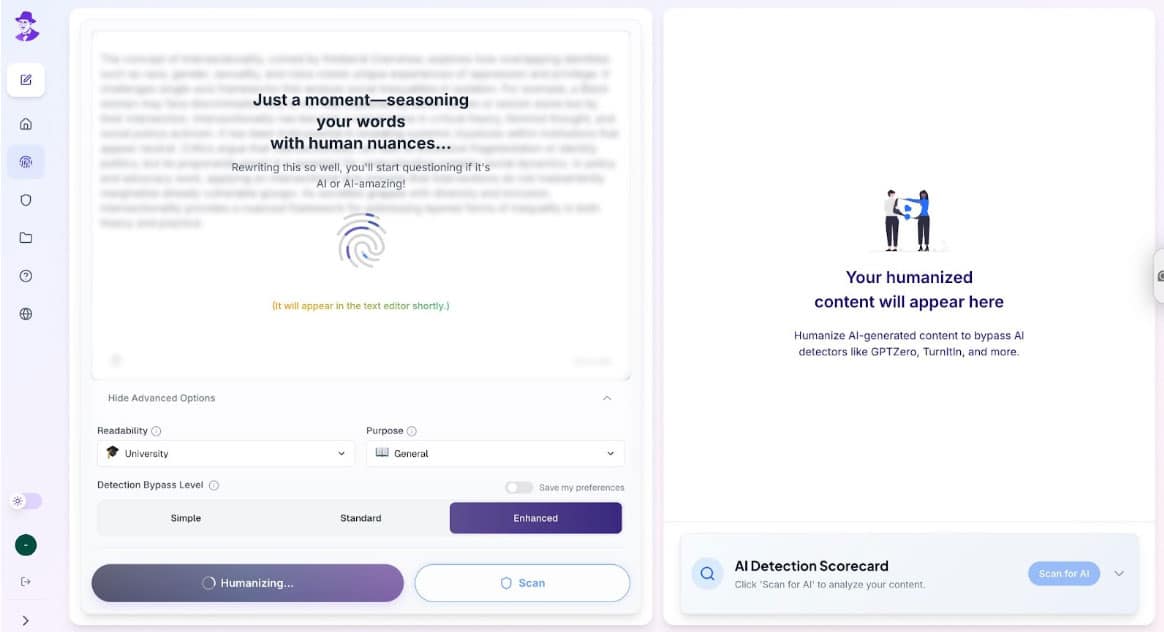 Why does that matter? Because most “AI humanizers” fake it: their so-called detectors just auto-label their own output as human. Walter doesn’t play that game. Its detector actually analyzes your text like a professional system would, checking linguistic patterns and sentence probability.